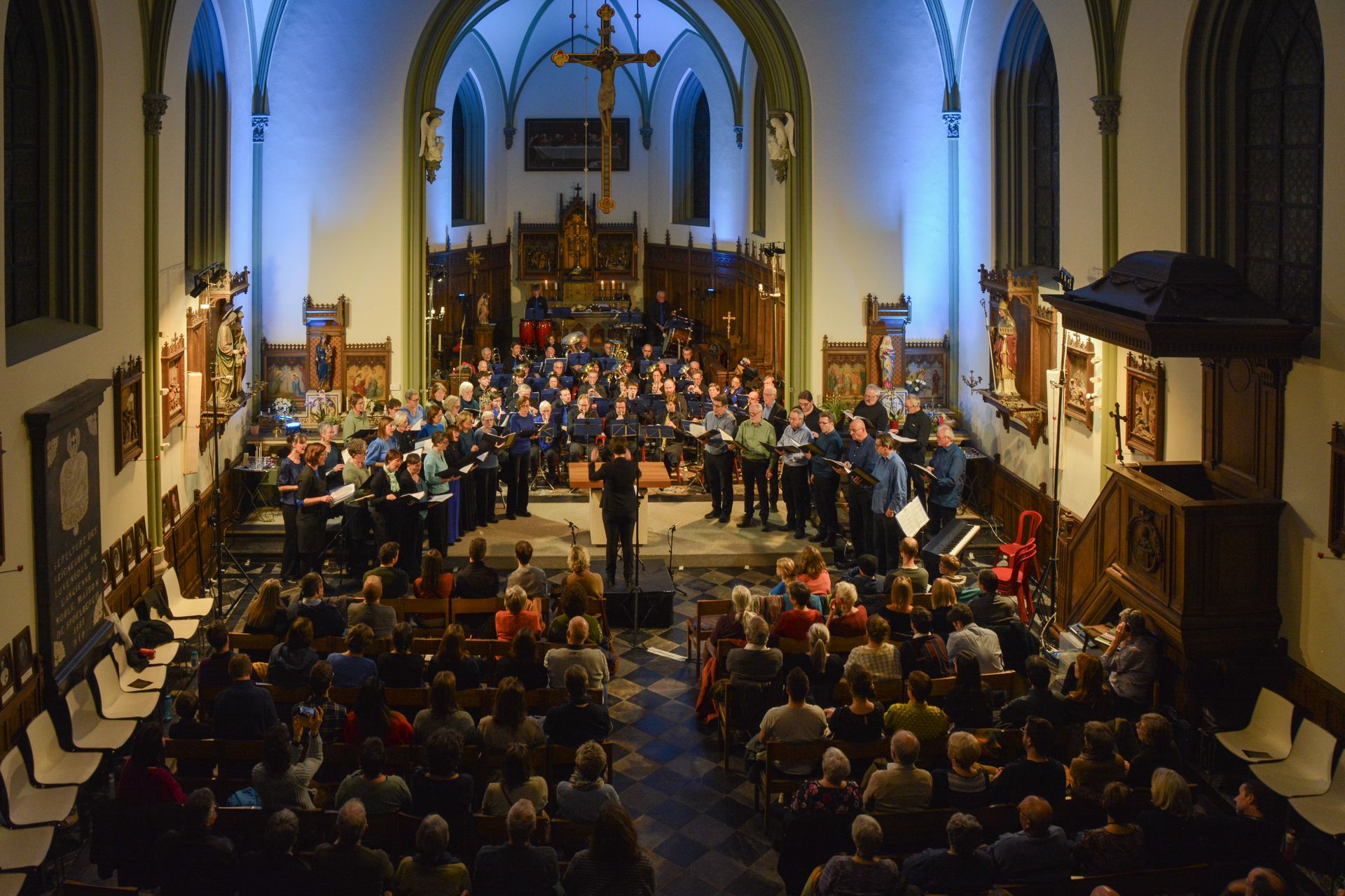 Een event organiseren, samen met een andere muzikale partner, is en blijft een uitdaging dat zowel inspirerend, boeiend, leerrijk als leuk ervaren wordt. Het achtgradenkoor en onze fanfare werkten eerder al samen. In 2012 organiseerden we in de feestzaal van Adem vzw - toen nog Ave Regina - een Valentijnsconcert t.v.v. Auti 3 for kids. Wat zou het dit jaar worden in de Sint-Lambertuskerk?