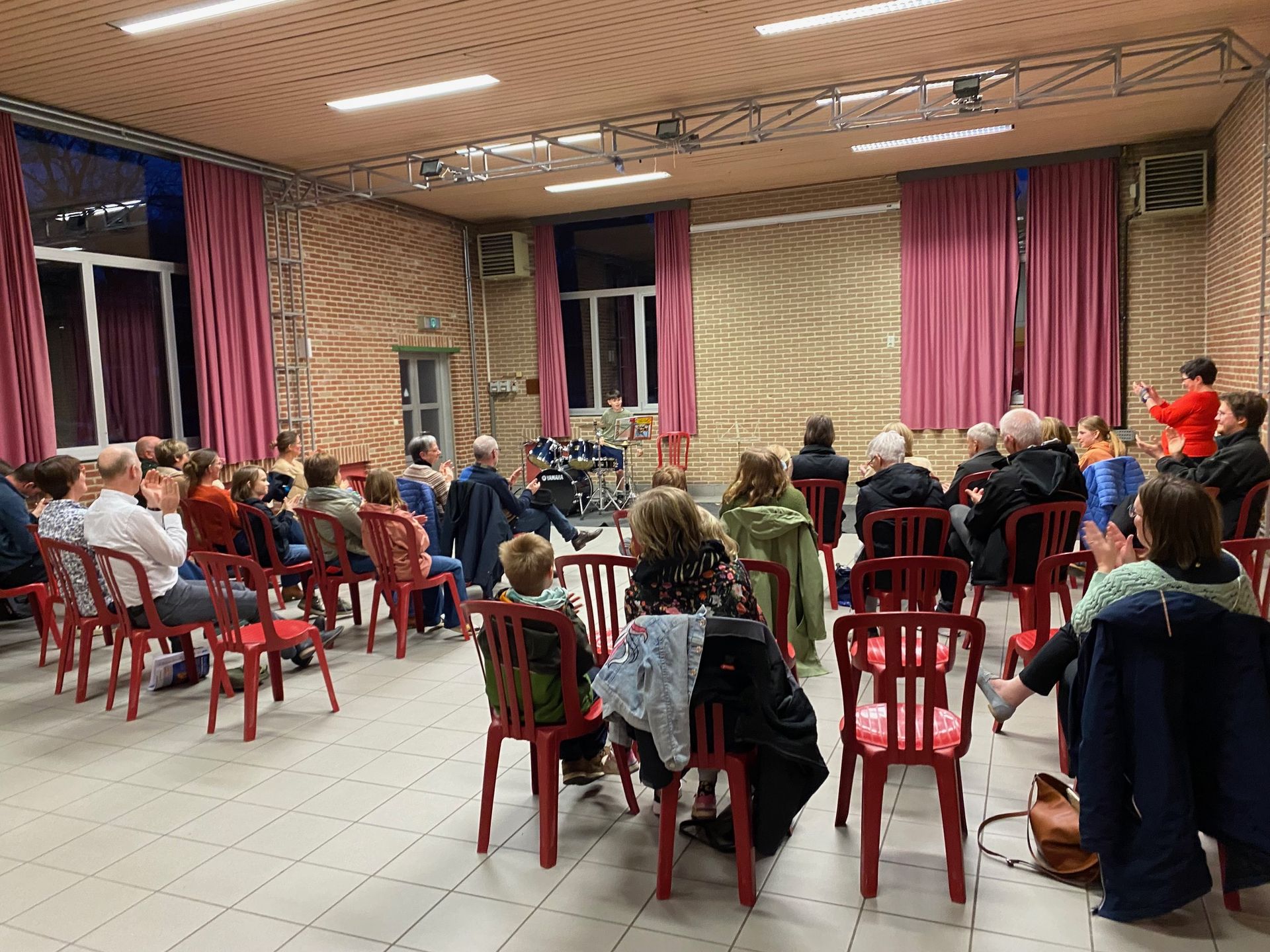 Vier koperblazers, twee sax-spelers en drie slagwerkers zorgden voor een gevarieerd en bij momenten swingend programma, onder het goedkeurend oor van hun leermeesters, ouders, grootouders, broers en zussen. De ene nog wat schoorvoetend, de andere vol goesting en power. Van zenuwen leek niemand echt last te hebben. Wat een knap staaltje durf en talent!